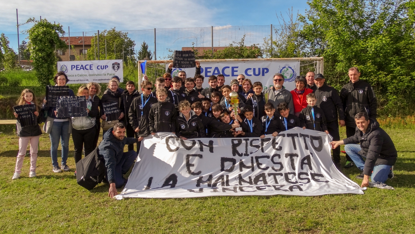 Peace Cup 2019 alla società Malnatese per il coinvolgimento sia della società sportiva, sia dei genitori che hanno fatto dei laboratori di preparazione assieme ai figli, per aver partecipato a due serate con la psicologa dello sport, sia perchè hanno lavorato con i ragazzi per preparare tutta l'organizzazione del torneo.